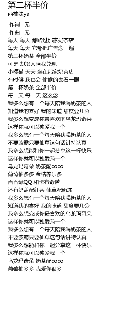 | [00:40.685] | 第二杯奶茶 全部半价 |