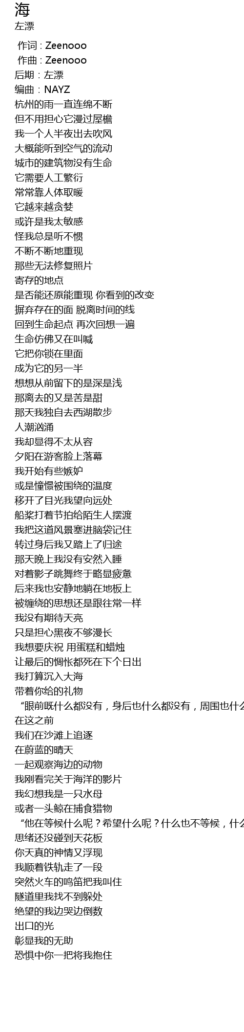 | [00:00.000] | 作词 : Zeenooo |