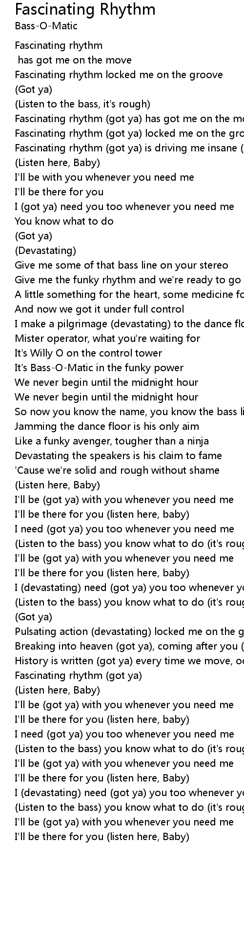 Fascinating rhythm (got ya) locked me on the groove (got ya) |