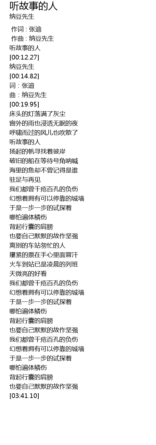 | [00:01.000] | zuò qǔ : nà dòu xiān shēng |
