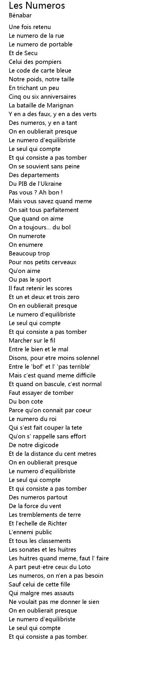 Les numeros, on n'en a pas besoin |