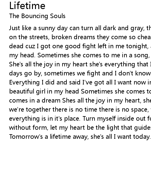 Just like a sunny day can turn all dark and gray, this game goes on and on. Out on the streets, broken dreams they come so cheap but no one can leave me for dead cuz I got one good fight left in me tonight, and the most beautiful girl in my head. Sometimes she comes to me in a song, sometimes she comes in a dream. She's all the joy in my heart she's everything that I see. Days they come and days go by, sometimes we fight and I don't know why I'll give it all up to her Everything I did and said I've got all I want now in my sight, and the most beautiful girl in my head Sometimes she comes to me in a song, sometimes she comes in a dream Shes all the joy in my heart, she's everything that i see. When we're together there is no time there is no space, when we're together everything is in it's place. Turn myself inside out for her, my endless love is without form, let my heart be the light that guides her through the storm. Tomorrow's a lifetime away, she's all I want today. |