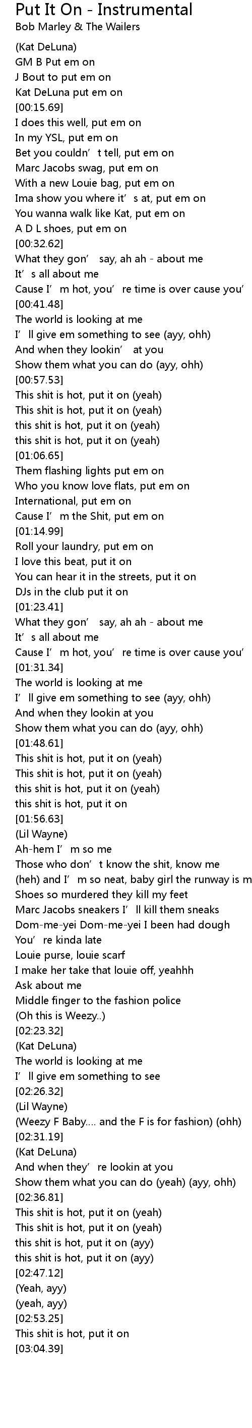 | [00:12.63] | Kat DeLuna put em on |