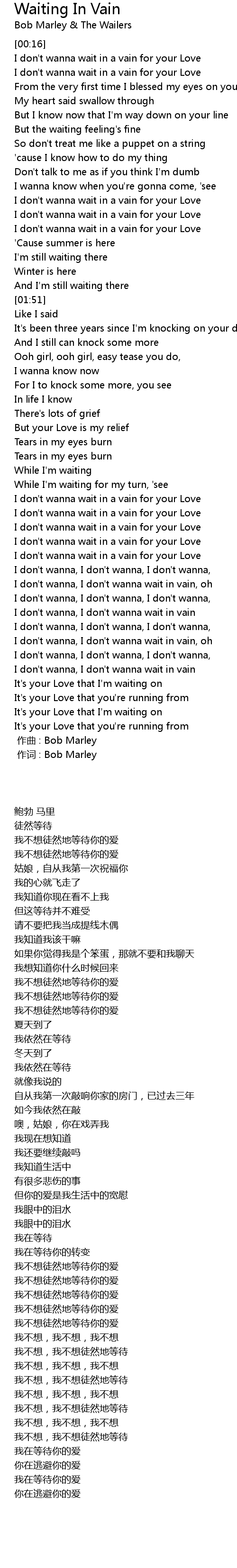 | [00:00.00] | 作词 : Bob Marley |