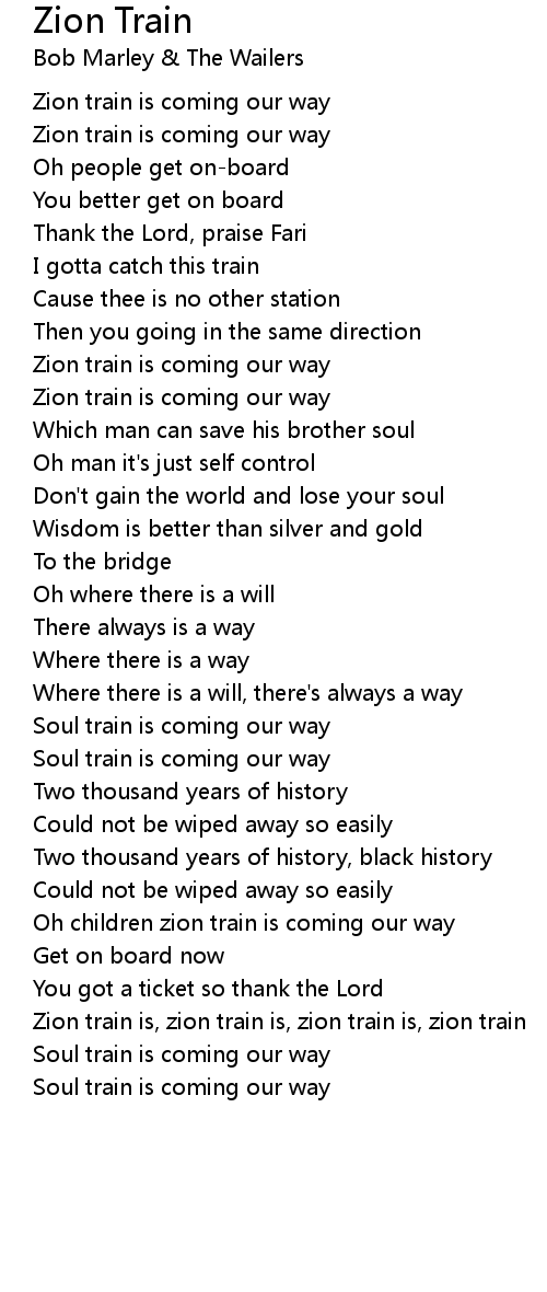 Oh children zion train is coming our way |