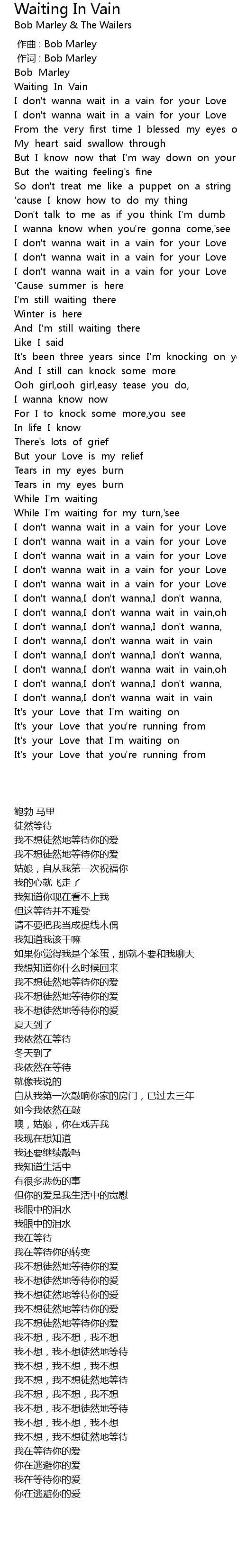 | [00:06.895] | Waiting In Vain |