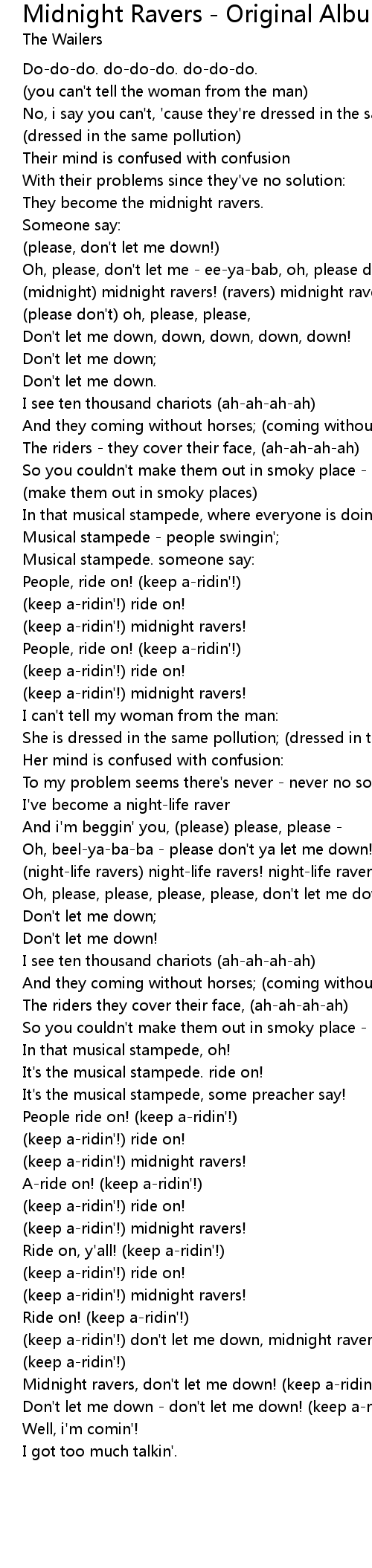 Midnight ravers, don't let me down! (keep a-ridin'!) |
