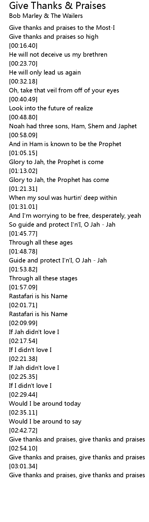 Give thanks and praises to the Most-I |