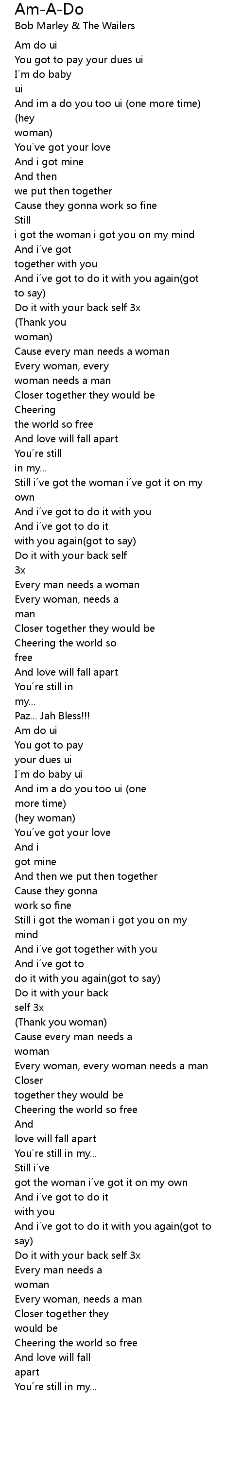 | Every woman, every woman needs a man | |