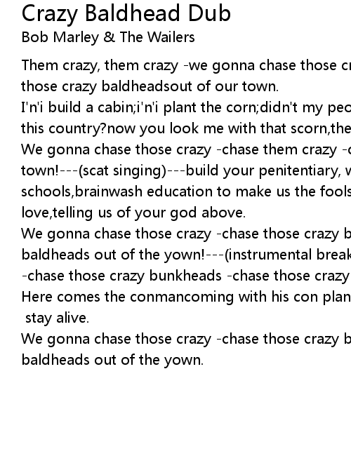 Them crazy, them crazy -we gonna chase those crazybaldheads out of town;chase those crazy baldheadsout of our town. |