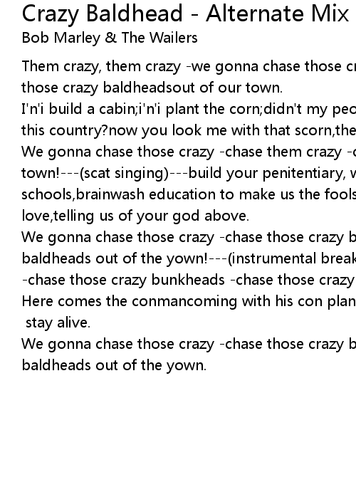 Them crazy, them crazy -we gonna chase those crazybaldheads out of town;chase those crazy baldheadsout of our town. |