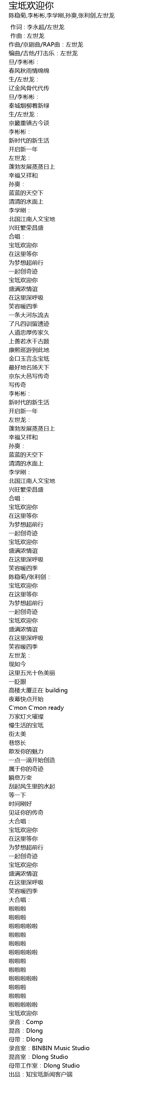 | [00:01.34] | 作曲/京剧曲/RAP曲:左世龙 |