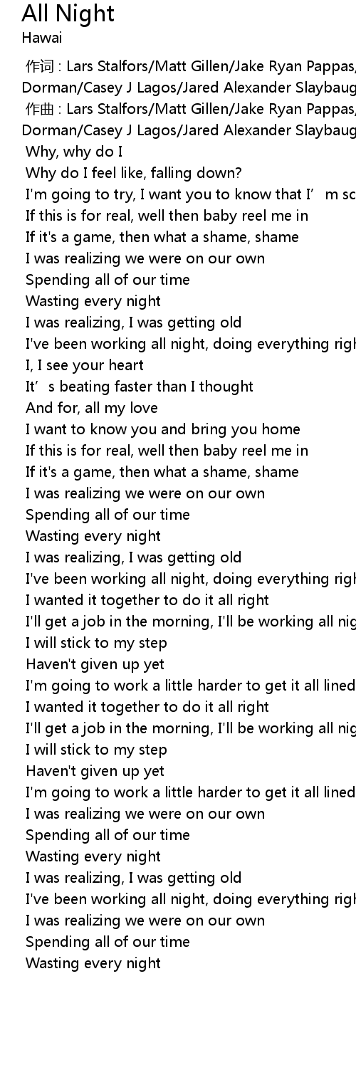 | [02:37.873] | I' ve been working all night, doing everything right |