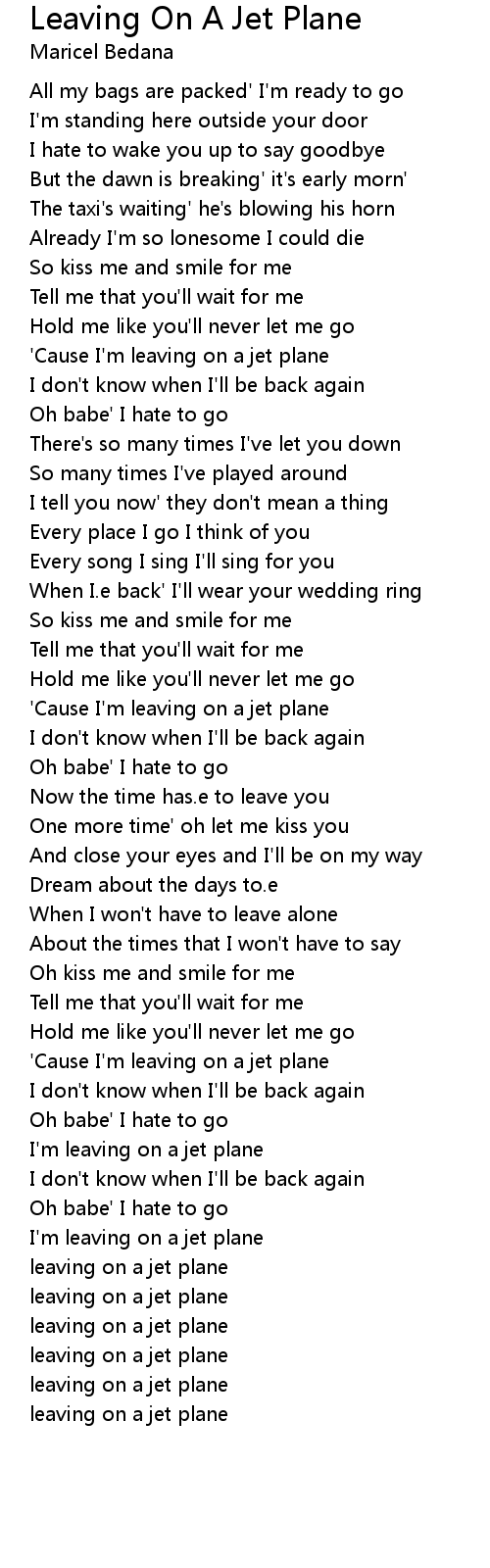 [03:26.100] 'Cause I'm leaving on a jet plane
