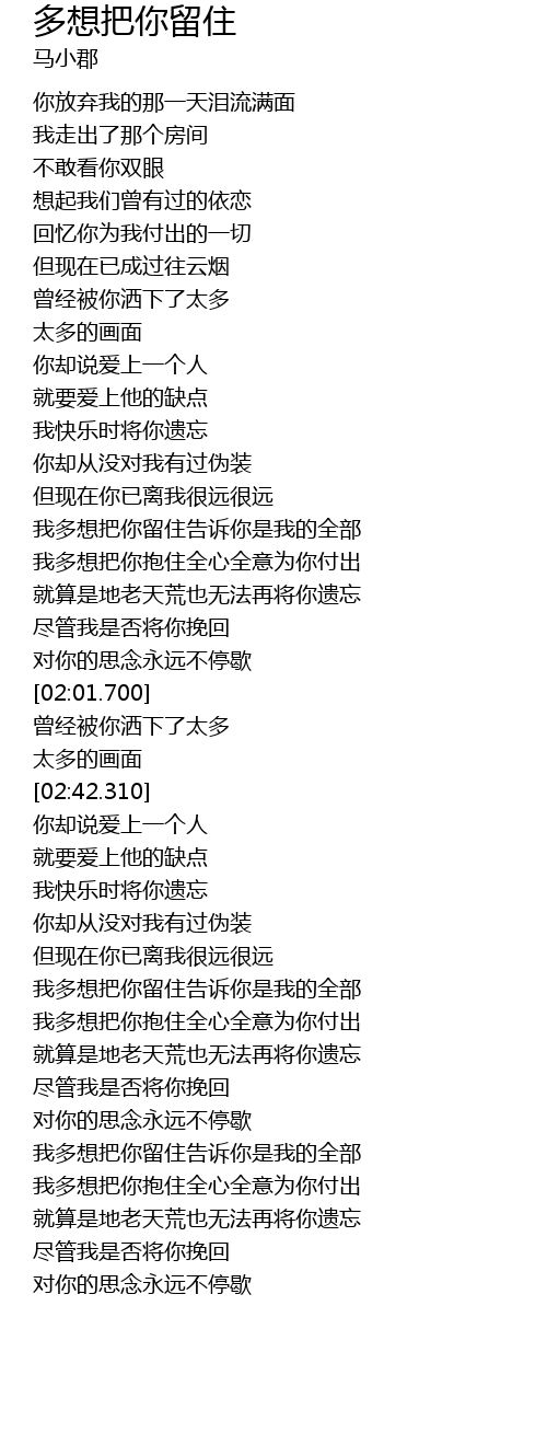 | [03:37.700] | 我多想把你留住告诉你是我的全部 |