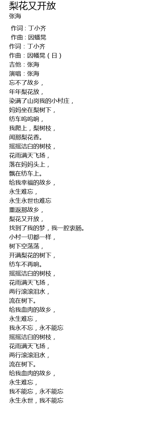 | [00:04.62] | yǎn chàng: zhāng hǎi |