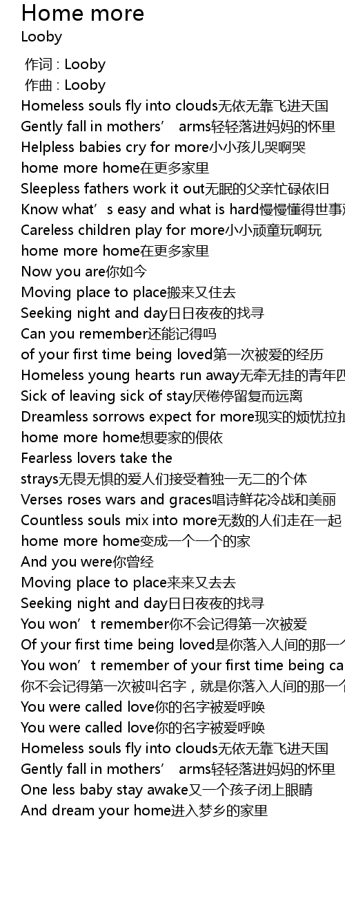 | [02:29.200] | home more home想要家的偎依 |