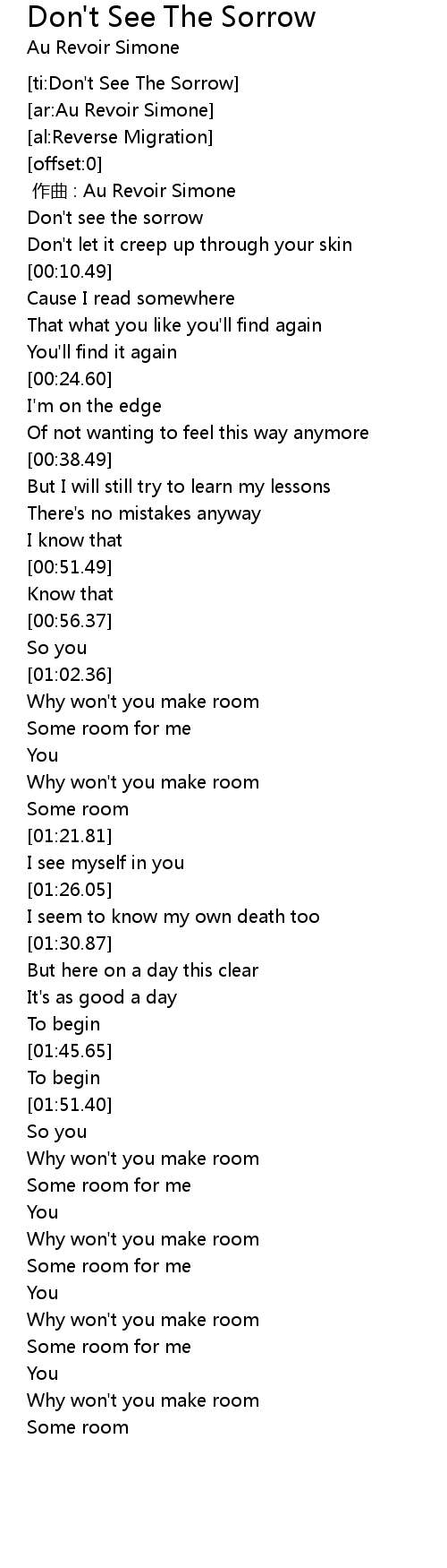 | [00:01.18] | Don't see the sorrow |