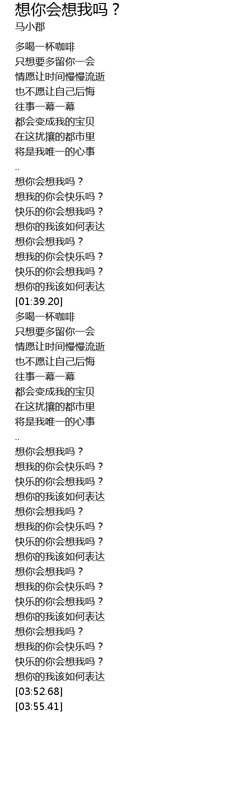 | [01:33.89] | xiǎng nǐ de wǒ gāi rú hé biǎo dá |