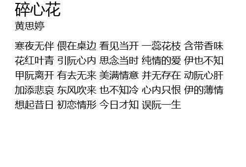 | 加添悲哀 东风吹来 也不知冷 心内只恨 伊的薄情 | |