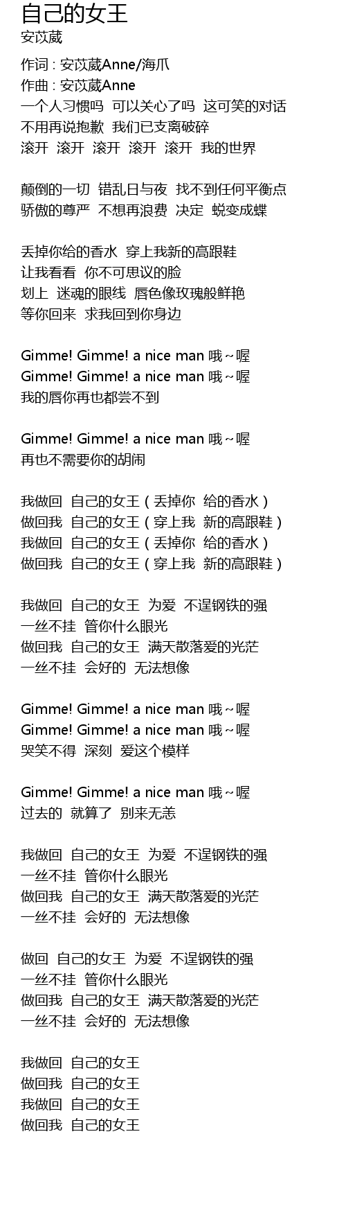 | 我做回 自己的女王(丢掉你 给的香水) | |