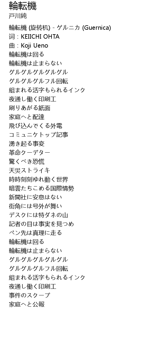| [00:00.00] | 輪転機 (旋转机) - ゲルニカ (Guernica) |