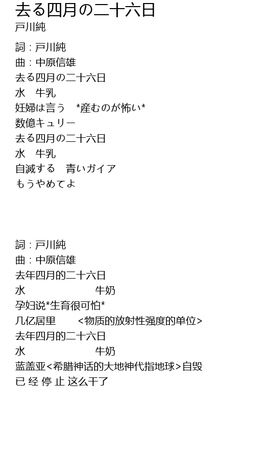 | [01:32.45] | qù sì yuè èr shí liù rì |