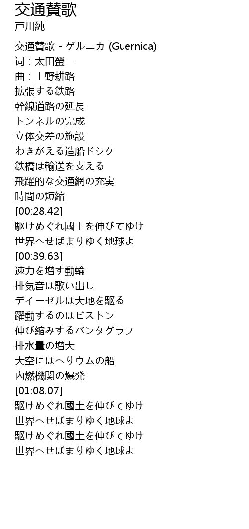 | [00:00.00] | 交通賛歌 - ゲルニカ (Guernica) |