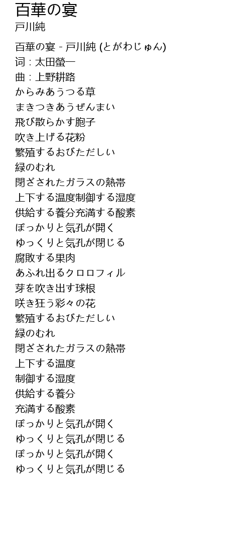 | [00:00.00] | 百華の宴 - 戸川純 (とがわじゅん) |