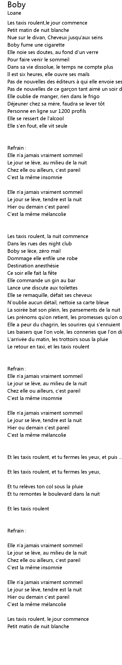 | Et les taxis roulent, et tu fermes les yeux, et puis ... | |