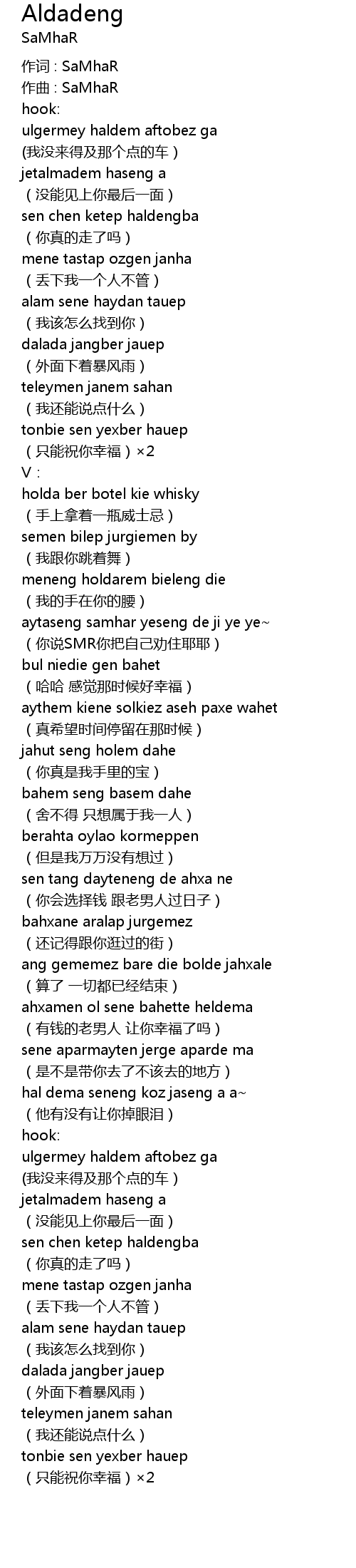 | 作词 : SaMhaR | |