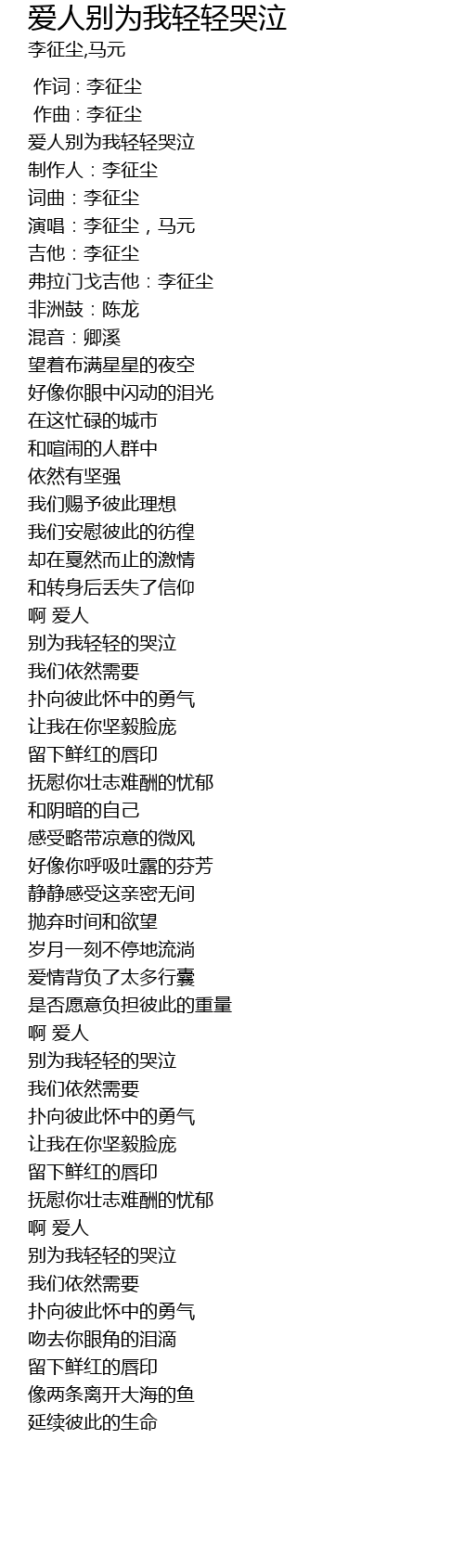 | [00:01.141] | 爱人别为我轻轻哭泣 |