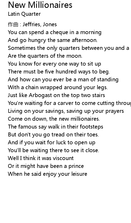 | Song | New Millionaires |