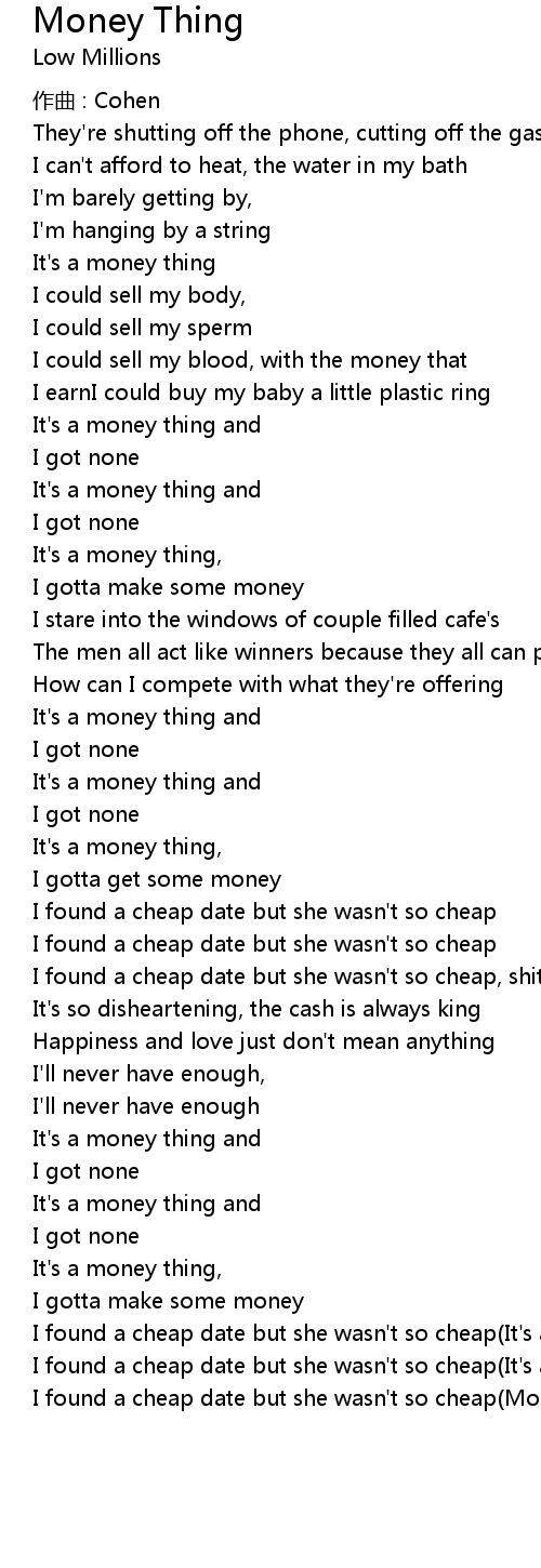 | I found a cheap date but she wasn' t so cheap It' s a money thing | |