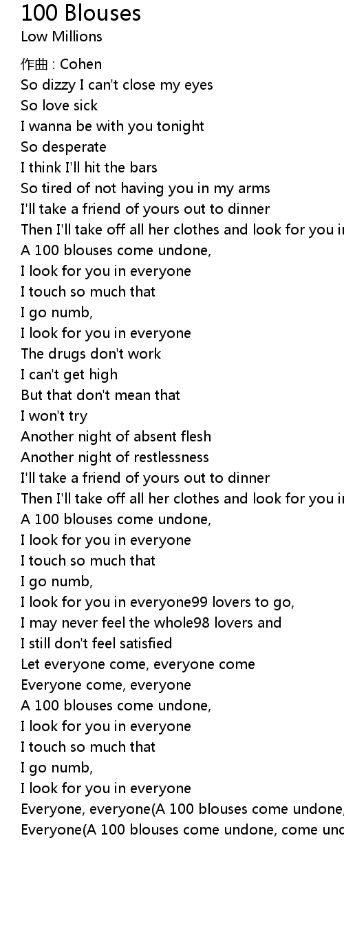 | Everyone(A 100 blouses come undone, come undone, come undone) |