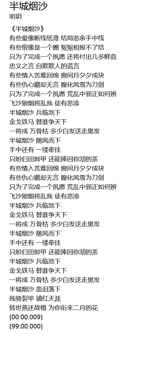 | [01:39.74] | 半城烟沙 兵临池下 |