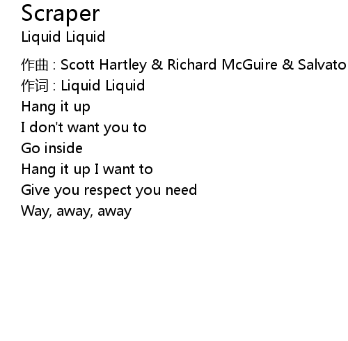 | 作曲 : Scott Hartley & Richard McGuire & Salvator Principato & Dennis Young | |