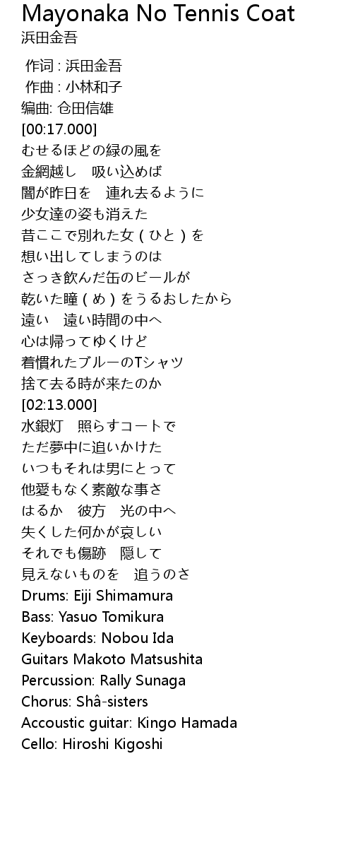 | [04:13.000] | Accoustic guitar: Kingo Hamada |