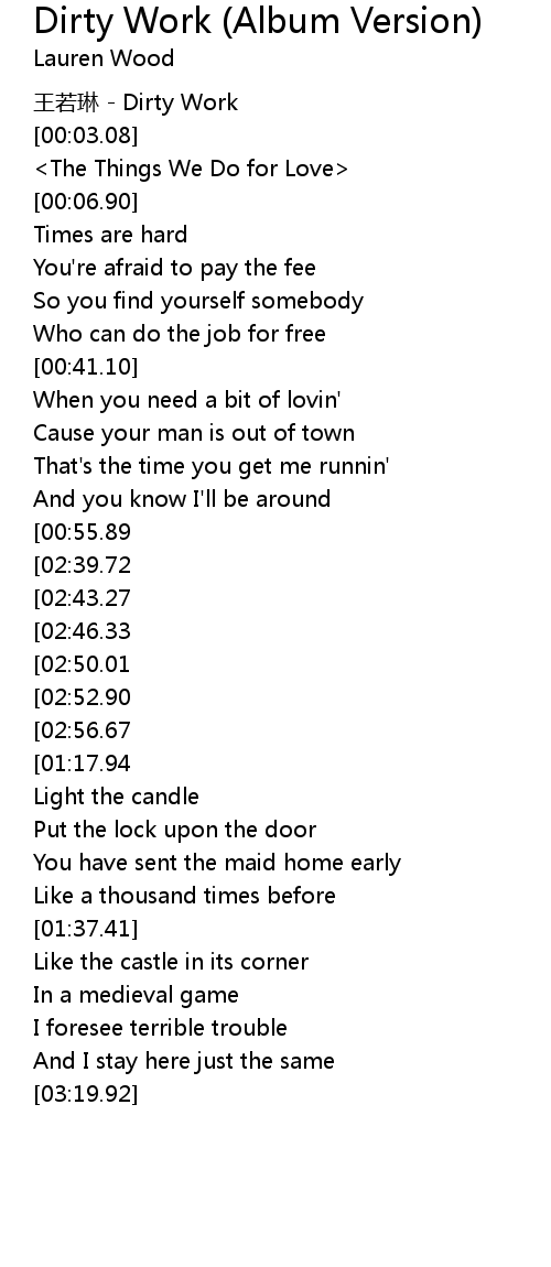 | [03:06.16][02:46.33][02:00.61][01:04.75] | I don' t wanna do your dirty work |