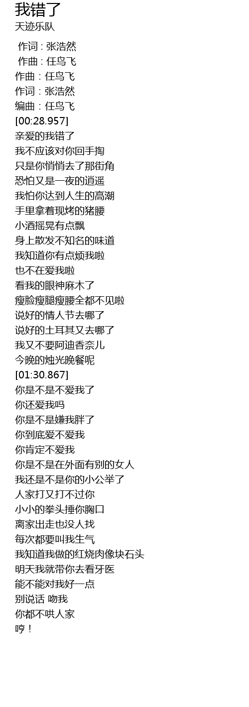 | [00:31.726] | qīn ài de wǒ cuò le |