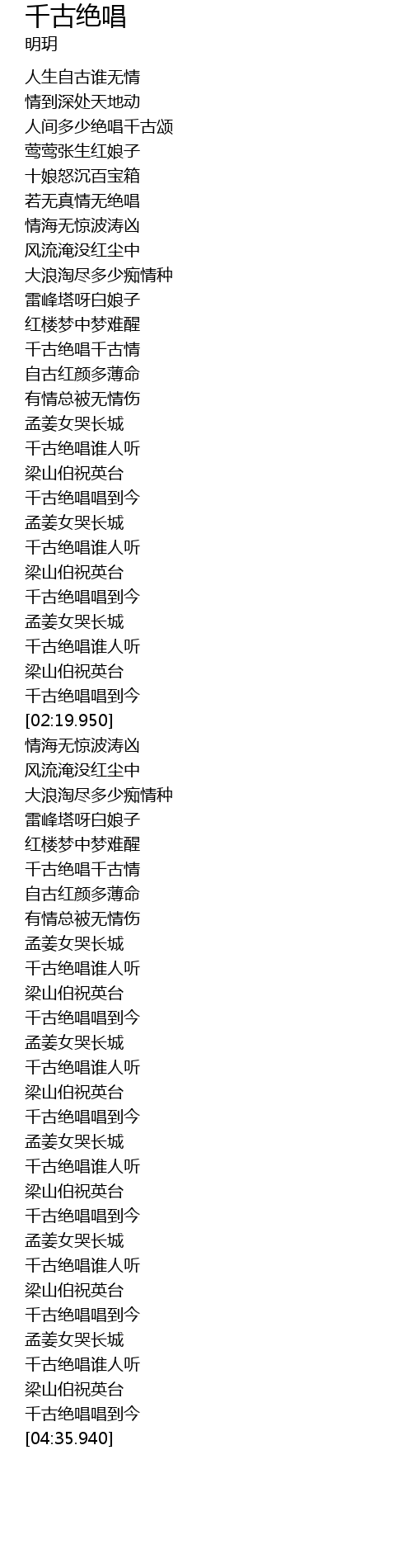 | [01:37.940] | 千古绝唱谁人听 |