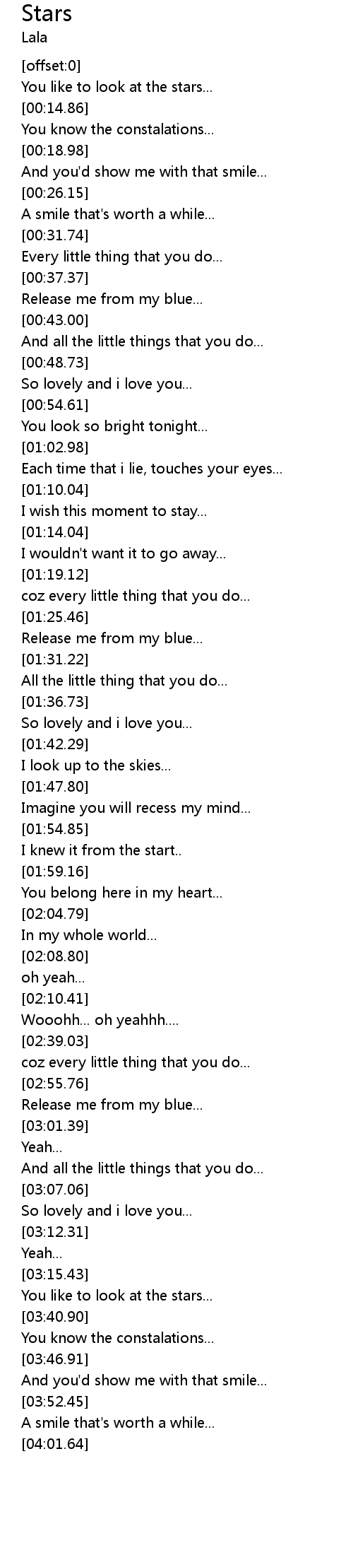 [00:11.73] You like to look at the stars...
