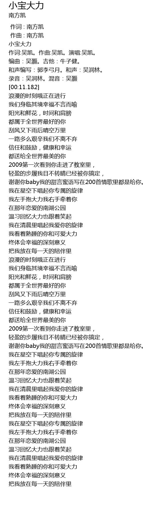 | [00:04.182] | 作词:吴凯。作曲:吴凯。演唱:吴凯。 |