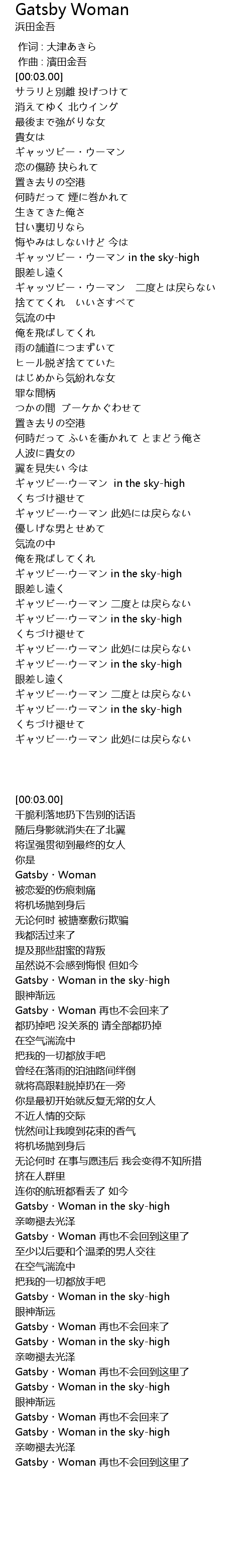 | [03:22.07] | ギャツビー·ウーマン in the sky-high |