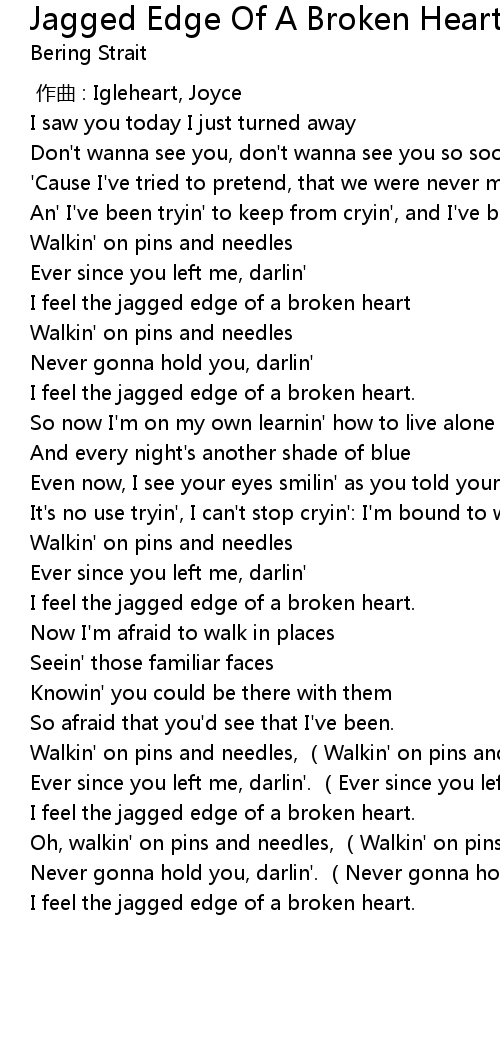 | [01:08.56] | I feel the jagged edge of a broken heart |