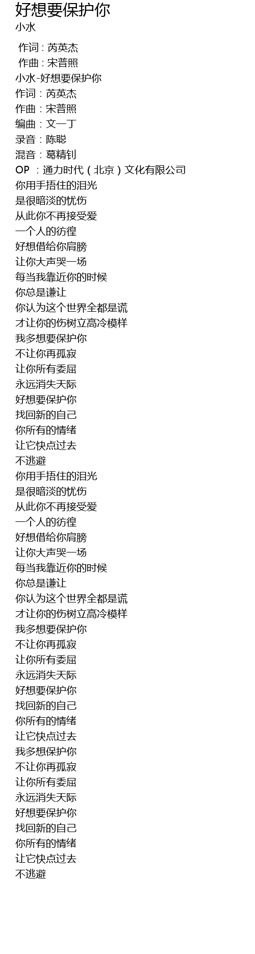 | [00:00.368] | xiǎo shuǐ hǎo xiǎng yào bǎo hù nǐ |