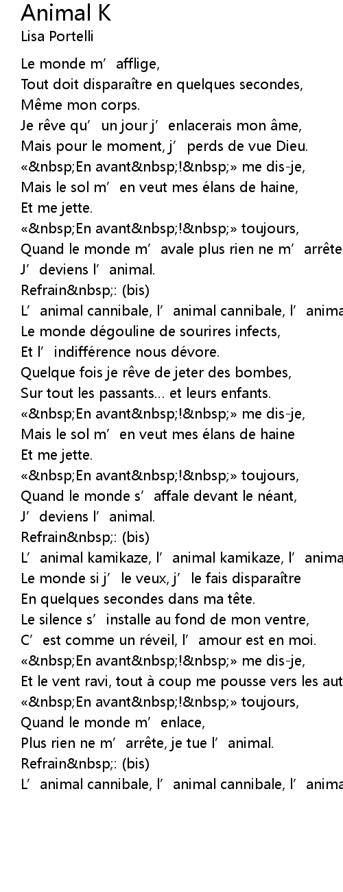 | L' animal kamikaze, l' animal kamikaze, l' animal K . | |
