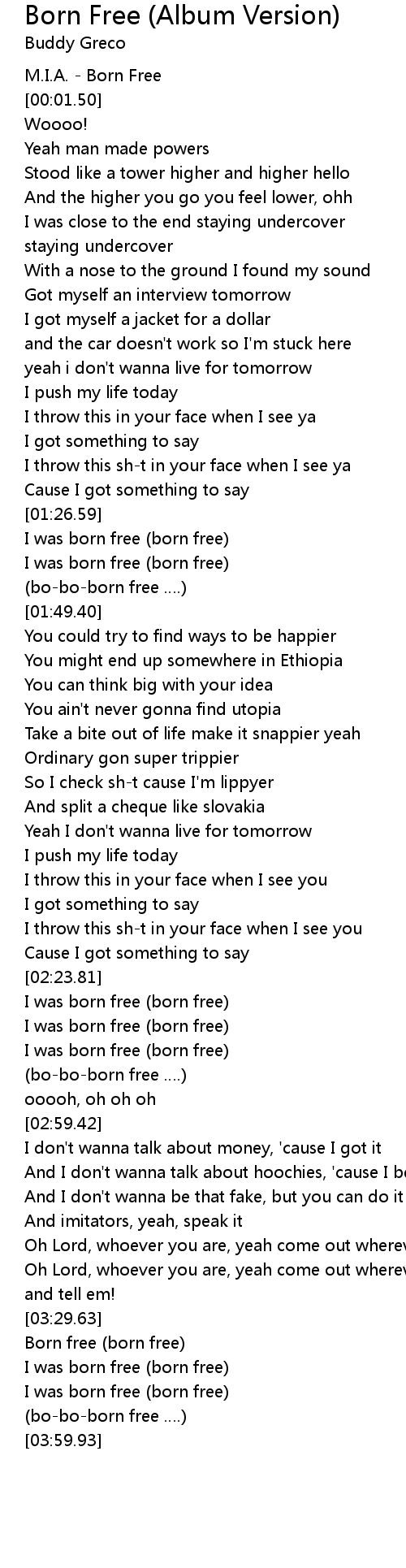 | [00:00.50] | M. I. A. Born Free |