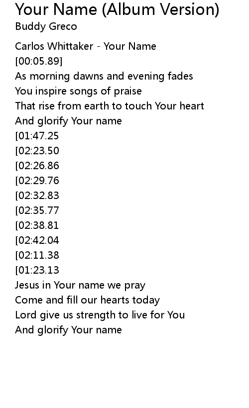 | [00:01.12] | Carlos Whittaker - Your Name |