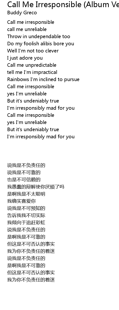 Call Me Irresponsible (Album Version) Lyrics